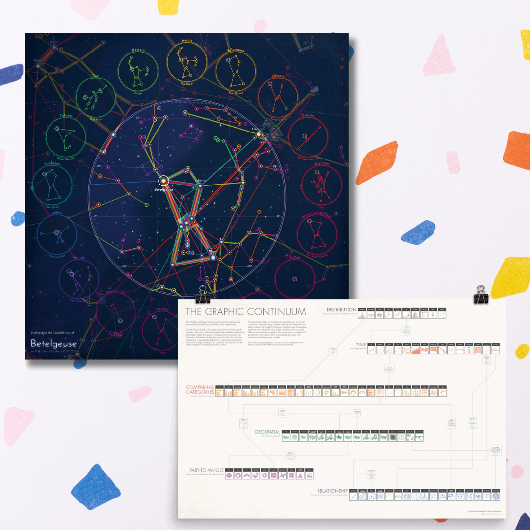 Browse Visual Cinnamon’s delightful data art prints or snag the helpful Graphic Continuum from Policy Viz.