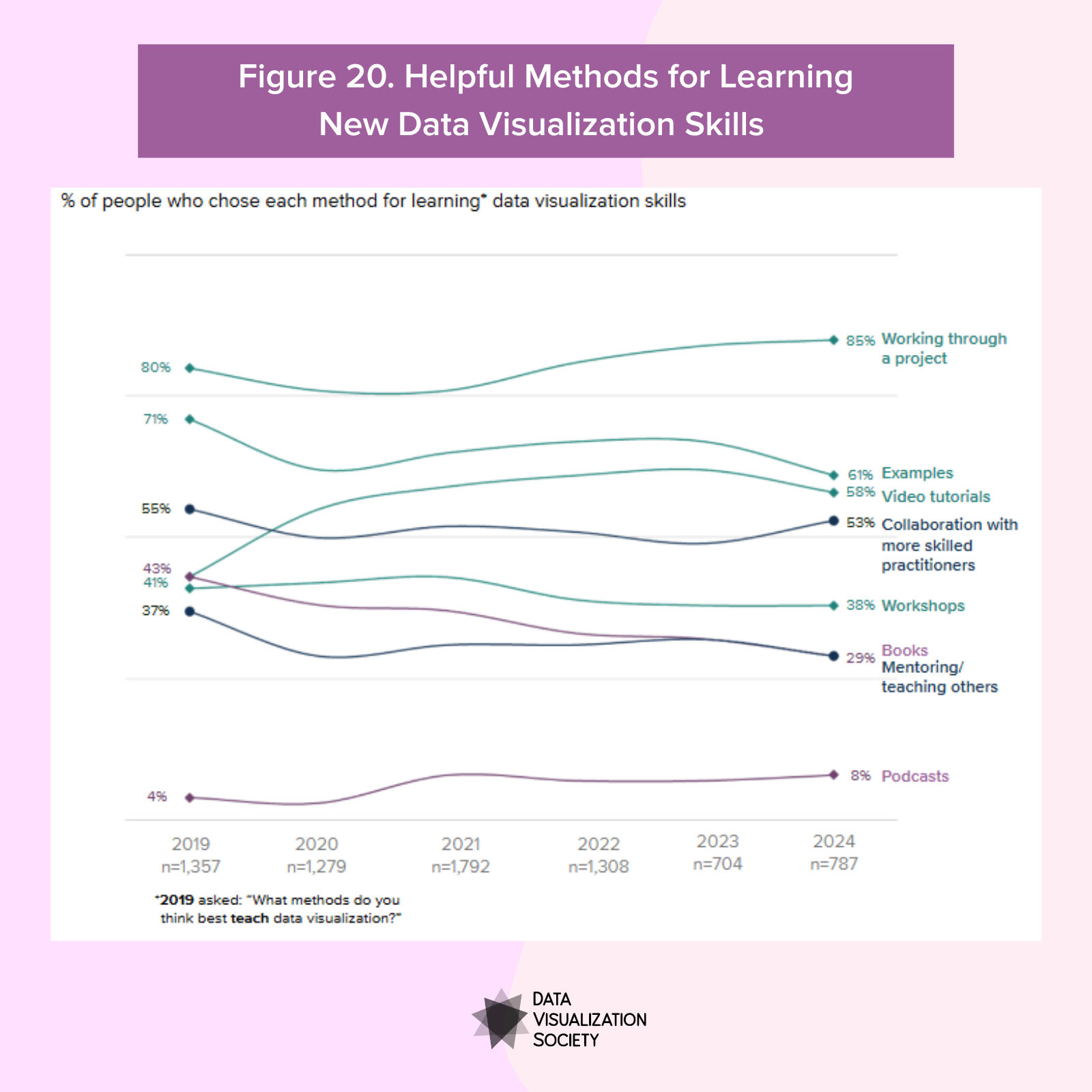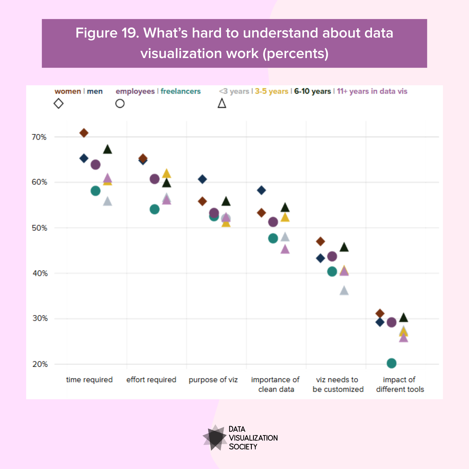 The purpose of this survey is to help the Data Visualization Society and the broader data visualization community understand the state of data visualization, the people who make it, the challenges they face, what can help practitioners, and where the field is headed.